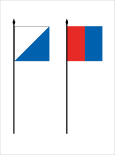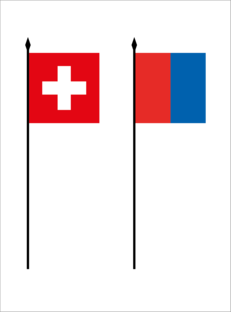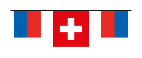 Le bandiere cantonali sospese alla sinistra di quella svizzera sono ad essa rivolte, cioè invertite (eccezione Canton Vaud).