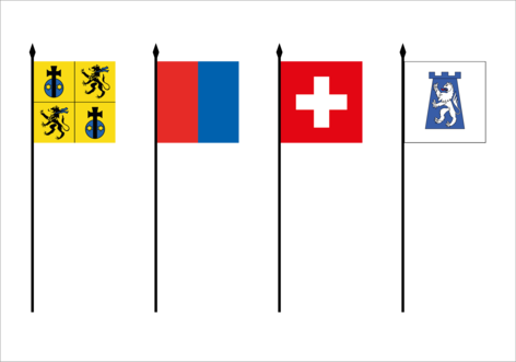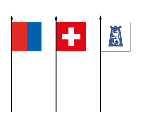 Le bandiere svizzere sono disposte secondo il seguente ordine: Confederazione, Cantone, Comune.